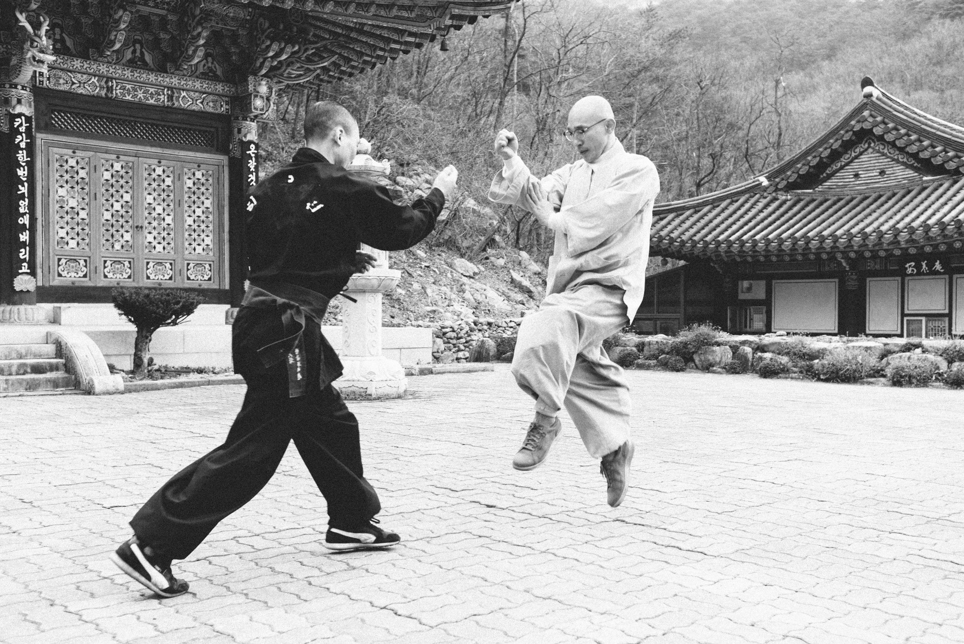 A series on a beautiful friendship between to Korean men. One migrated to the Netherlands an became a professor, the other become a monk near the border with North Korea. Every so often they visit eachother. Catching up, drinking tea and practice the beautiful martial art of sipalki.