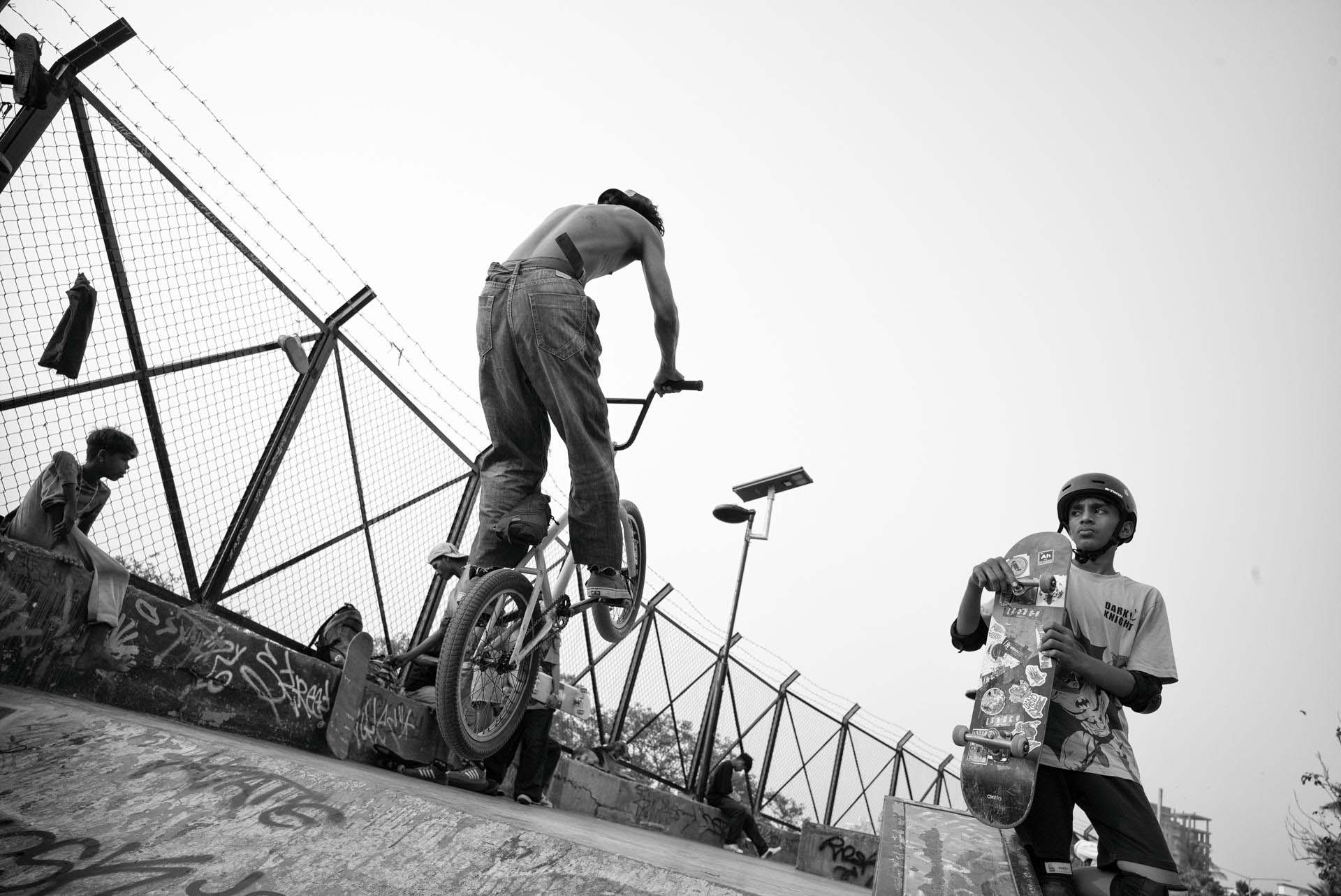 While in Mumbai I specifically wanted to find a skateparc to capture the life and the action on the ramps. My nephew loves skateboarding and I tought it would be cool to start a series of skateparcs at the places I visit. This is the first - and so far - only one.